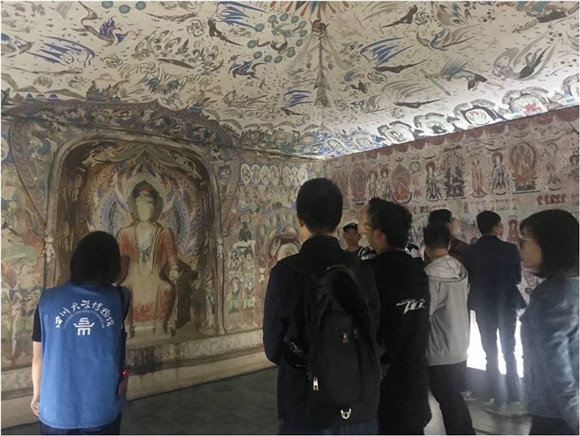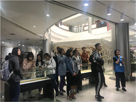 在参观中,王渝红老师和同学们认真聆听解说员的讲解,兴致盎然,用手机记录下精美的展品并不时与身旁的人交流心得体会……通过参观此次展览,大家得以在工科学习之余一窥敦煌的古老与神秘,品味悠长的丝路韵味,近距离欣赏在敦煌莫高窟靠隐约的手电才能看到的精彩壁画,感受了敦煌文化的无穷魅力。