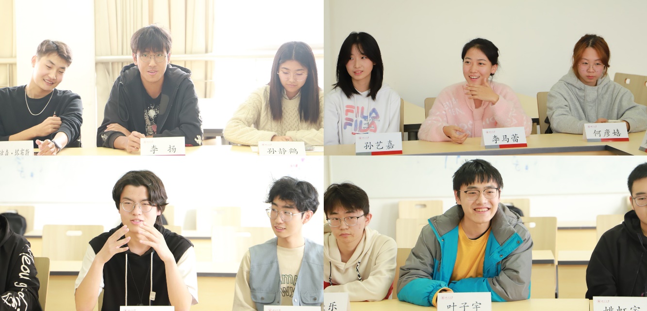 在江安校区举行了2023年秋季学期师生座谈会。学院党委书记赵昱辉,教务科科长王晓芳,2023级本科生辅导员李程、杨龙杰,以及2023级学生代表参加了本次座谈会。