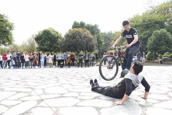 下午15时,团校第二次行课正式开始。本次团课开展了三个趣味主题活动:背靠背夹气球、纸传乒乓球、纸袋坦克。活动中,团员们以支部为单位,进行小组比拼。三个活动均考验了同组同学间的团队合作精神,鼓励作为新时代青年的共青团员们“不忘初心,牢记使命”,不断为开创中国特色社会主义事业新局面贡献自己的力量。中场休息时,骑行社社员还向团员们表演了“飞车越人”的惊险项目,表演者克服恐惧、相互信任,向团员们献上了一场精彩的表演,现场气氛十分热烈。