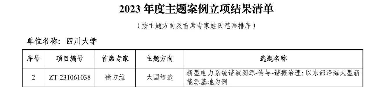 徐方维教授担任首席专家申报的“大国智造”主题案例《新型电力系统谐波溯源-传导-谐振治理:以东部沿海大型新能源基地为例》成功立项。