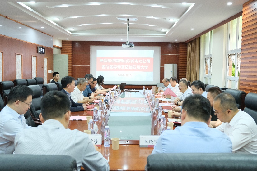 实验室参观结束后,双方在专业实验中心会议室开展了座谈交流。座谈会由佃松宜教授主持,他首先向国网山东电力公司孙岗总工程师一行的来访表示热烈欢迎并简要介绍双方参会人员。会上,孙岗总工程师代表国网山东省电力公司对四川a漫