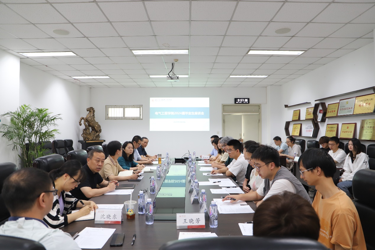 2024届毕业生座谈会在学院会议室举行。学院党委书记赵昱辉,党委副书记戴婷婷、副院长李长松,电气工程系党支部书记陈实、自动化系副主任刘彦、专业实验中心主任肖勇、电工电子基础实验教学中心主任沈晓东,学生科、教学科、研究生科的教师代表以及学院2024届本科生、研究生代表参加了此次座谈。会议由戴婷婷副书记主持。