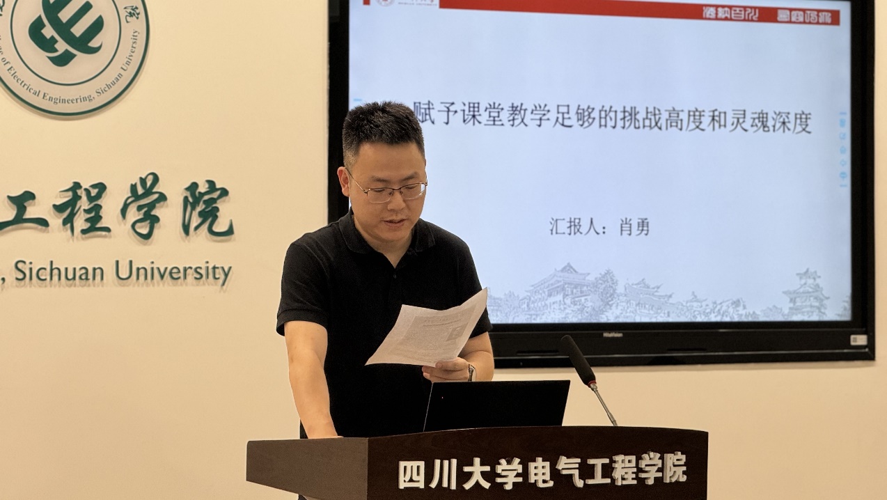 老一辈教师在人才培养、教书育人方面的工作,鼓励学院青年教师们热爱高等教育事业,提出要不断的提高理性思维能力和逻辑站位,打开格局和视野,要在国内的竞争中突出优势。随后,肖先勇院长以个人的教学经历和近期开展的青教赛为切入,指出青年教师要注重授课质量的提升,并启发大家在课程中融入学术底蕴,注重人才培养和课堂教学的研究。最后,肖先勇院长表达了对学院和教师未来发展的信心,相信通过大家的努力,学院的人才培养质量和社会价值将不断提升。