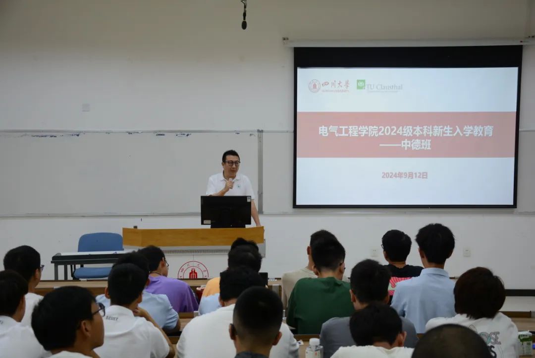 9月12日上午,新生入学教育系列之本科教学专题会在综合楼C408继续进行。由陈实老师主讲,会议内容涵盖项目基本情况、师资团队介绍、培养过程简介以及项目开展情况等四大部分。陈实老师结合历年中德班学生的学习数据,详细讲解了新生入学需要注意的事项,尤其是第一学期的重要性及德语C1水平的关键性。陈老师鼓励新生尽快调整状态,适应大学的学习节奏,树立正确的学习态度和方法,力争取得优异成绩。同学们表示通过这次会议,进一步明确了学习目标和努力方向,对项目要求和学习重点有了更清晰的认识,特别是德语学习的重要性。
