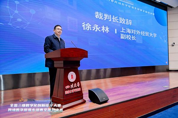 商学院副院长姚黎明介绍了商学院的学科发展情况以及在跨境电商方面的研究及应用。上海对外经贸大学副校长徐永林代表裁判专家组致辞。