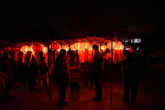 晚19时,火影灯谜大会在温馨愉悦的气氛中拉开帷幕,吸引了众多来往学生驻足观看、亲身参与。夜幕悄悄降临,火红的灯笼一一亮起,化作青春广场上一片独有韵味的风景,每个灯笼下都挂着灯谜纸条,灯谜涉及语文、历史、地理与生活小百科等多个方面,内容丰富,难度各异。同学们时而轻声读题,时而认真思考;时而踌躇犹豫,时而会心一笑。气温虽然较低,但却丝毫没有影响大家的参与热情,现场热闹而不失秩序,核对答案与领奖处排起了长长的队伍。晚21时,活动圆满结束。