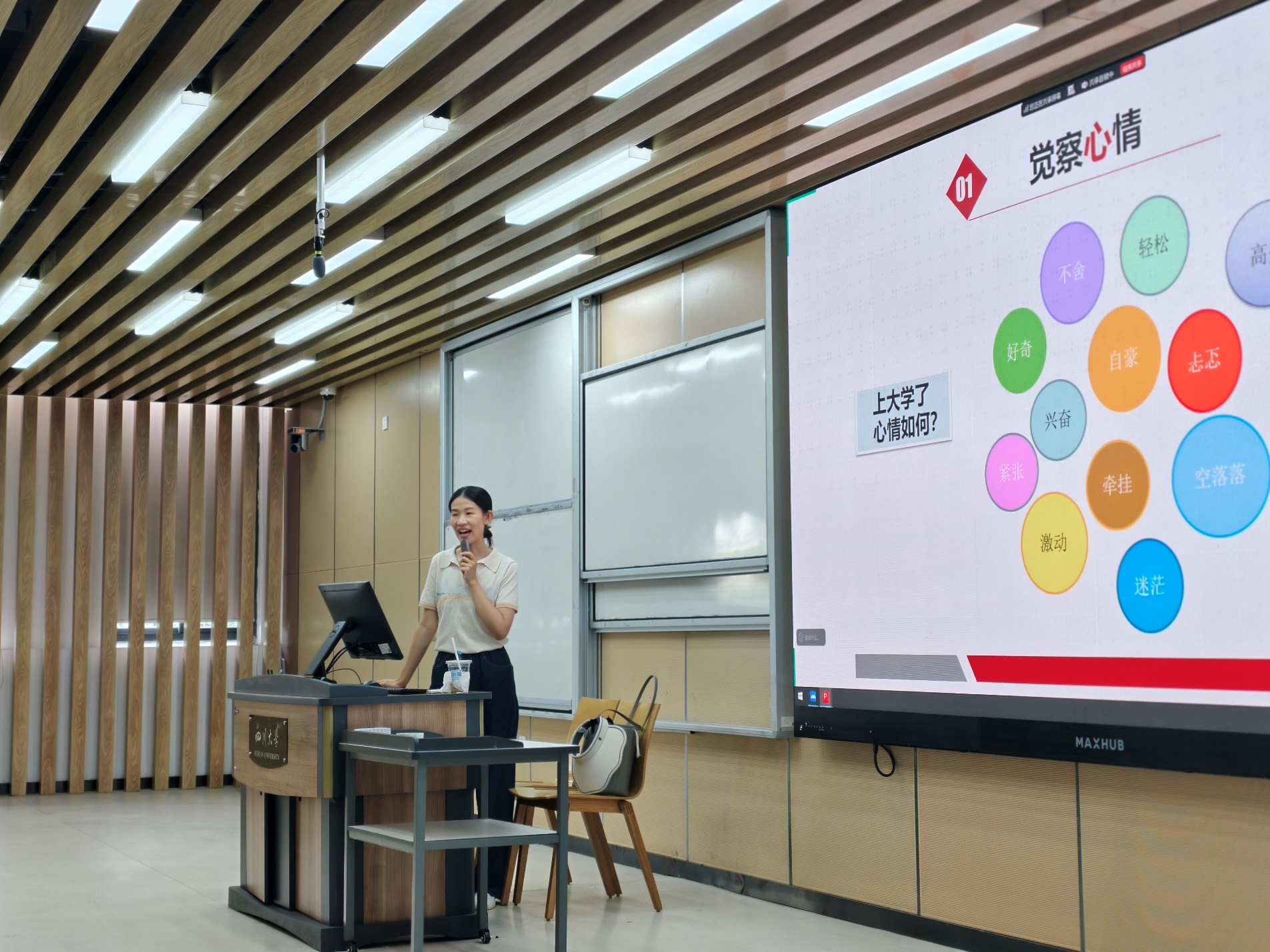 9月4日下午,学校心理健康教育中心王瑾一老师主持开展了“新生活从‘心’开始”专题讲座。王老师围绕环境适应、人际交往与学业压力等新生常见心理议题,解析了大学生活带来的变化与挑战,引导同学们关注情绪调节、积极心态培养与自我认知,并介绍了有效的压力应对策略和校内外心理支持资源,鼓励同学们学会主动适应、有效沟通与适时求助,为健康积极的大学生活奠定心理基础。