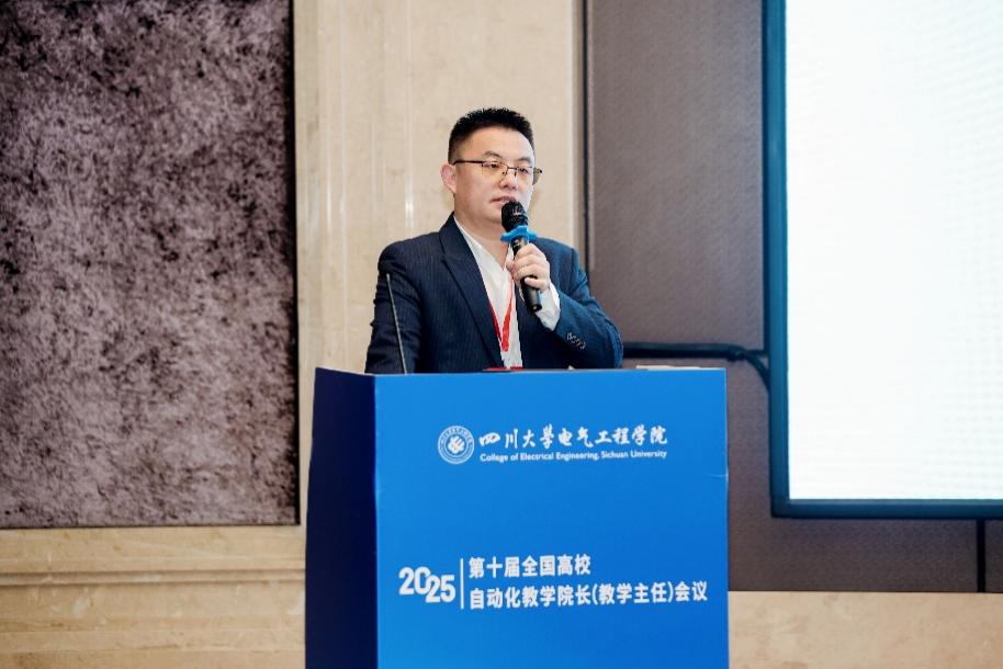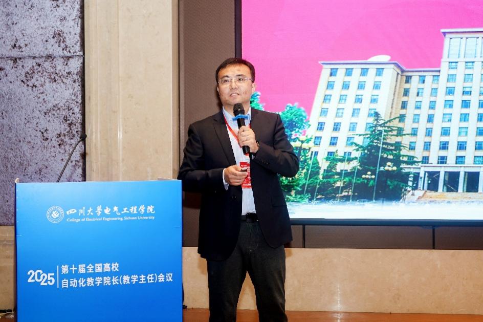 与会期间,安徽大学副校长何舒平教授作“‘双一流’建设背景下地方高校自动化专业建设的探索与实践—以安徽大学为例”的主旨报告;上海交通大学校长助理杨明教授作“AI深度融合OBE的‘能力生成’控制类课程改革探索与实践”的主旨报告;浙江大学控制科学与工程学院院长程鹏教授作“智能时代下控制科学人才培养的思考和探索”的主旨报告;清华大学自动化系副主任耿华教授作“自动化学科建设与拔尖创新人才培养”的主旨报告;合肥中科深谷科技发展有限公司副总裁蒋荣慰作“深谷开源智脑:机器人群体智能新范式”的主旨报告;西安交通大学自动化学院副院长吕娜教授作“人工智能飞速发展下的自动化教学改革探索”。a漫 副院长李长松作“‘电’亮初心、‘智’启未来:川大电气卓越工程人才培养探索与实践”的主旨报告;南京邮电大学赵勃教授作“从课到赛——如何破局硬骨头课程并转化为竞赛成果”的主旨报告;深圳市越疆科技股份有限公司教育事业部总经理李晓亮作“具身机器人走向常态作业——从独立运作迈向群体协同”的主旨报告。