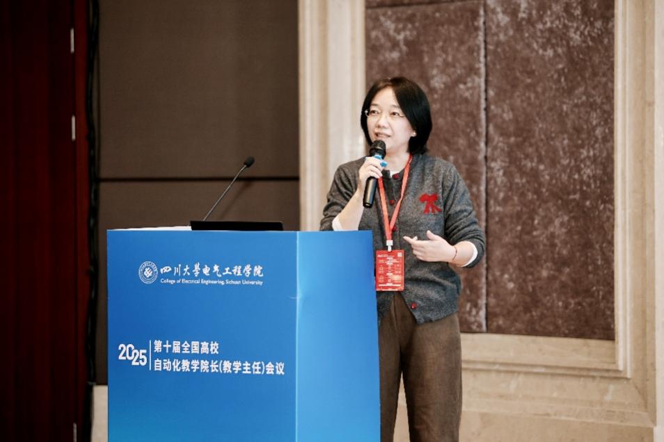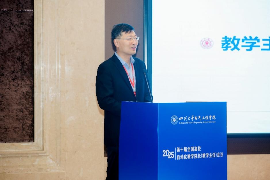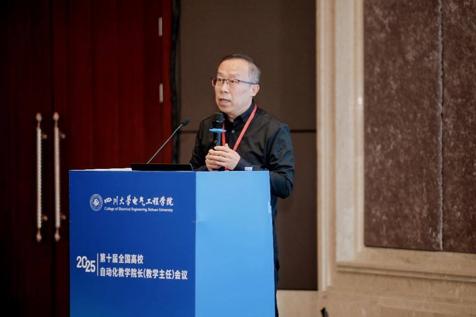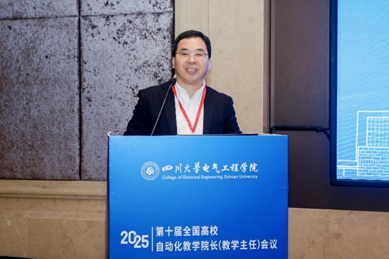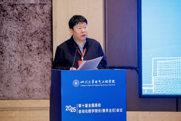 王艳丽代表四川省教育厅高教处对会议的召开表示祝贺。她指出四川省正深入贯彻落实党的二十届四中全会精神,持续优化高等教育布局,深化评价改革与综合试点工作,着力构建基础学科拔尖人才、战略紧缺人才和创新创业人才培养机制,本次会议聚焦智能时代自动化专业人才培养的创新与实践,是推动教育、科技、人才三位一体协同发展的重要举措。面对智能化发展趋势,自动化专业发展需进一步推动大数据、人工智能等前沿技术与传统课程深度融合,构建符合区域产业需求的自动化教育新生态。最后,她希望与会专家为四川省高等教育发展建言献策,共同推动自动化人才培养体系创新,为国家和区域现代化产业体系建设提供有力支撑。