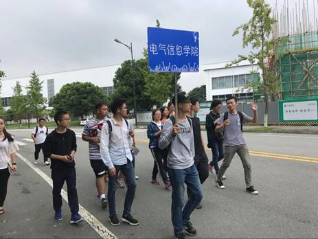 2016级学生担当领队,旨在帮助新生熟悉江安校区环境,领略校园风光,了解我校的基本情况。