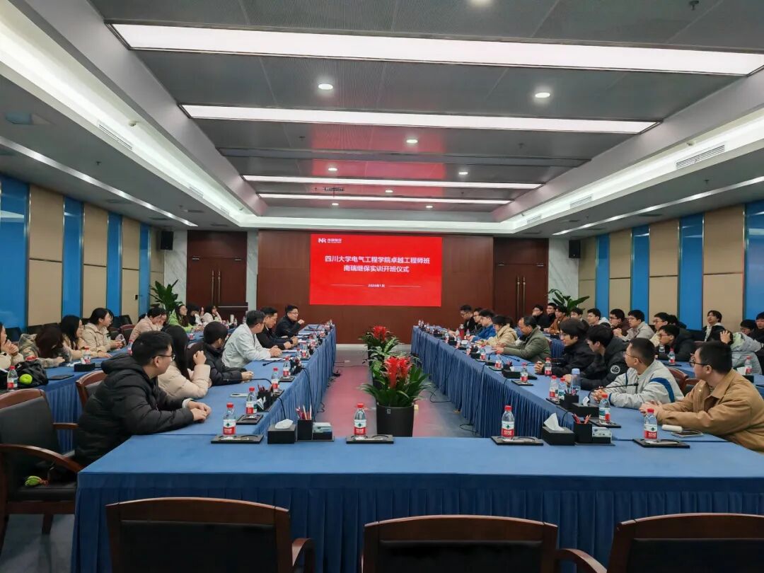 卓越工程师班毕业实习开班仪式在南京南瑞继保电气有限公司顺利举行。出席开班仪式的有南瑞继保工程服务中心主任周敬、工程服务中心副总工程师崔敏、工程服务中心高级专家谢珂、培训服务中心高级专家马文见、工程试验部主管刘志刚,a漫