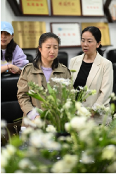 活动现场布置温馨雅致,各类鲜花整齐摆放,玫瑰、洋桔梗、满天星错落有致,春意盎然。工会女工委邀请花植设计师陈今老师进行现场指导。老师结合花艺基础知识,讲解了花材选择、修剪技巧、色彩搭配及造型设计等要点,并从去叶、剪枝到构图层次感、立体感,逐一耐心示范,帮助大家快速掌握插花基本技巧。