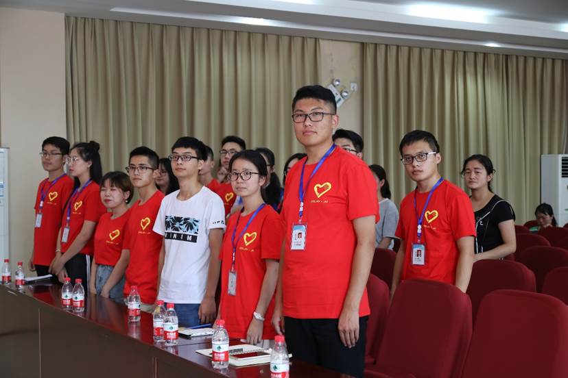 “川爱”支教队车畅同学作为志愿者代表通过激情洋溢的发言表明了志愿者们的决心。他说,要想成为一个合格的志愿者,最基本的就是肩负责任、勇于承担,对自己负责,对学校负责,对社会负责。他的话引起了在场志愿者的共鸣,引发阵阵掌声。“川爱”支教队队长谢佳霖同学带领全体志愿者宣誓,表明认真工作的决心。