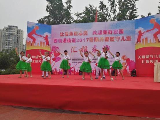 活动在机场路社区激情澎湃的《我相信》中拉开帷幕,汇报演出包括歌舞、乐器演奏、舞台剧、武术,朗诵等形式,来自西航港街道九个实践点位的十余支队伍为街道广大留守儿童和儿童家长展示了当代青少年的青春与活力。一段《少年中国说》更将现场气氛推向高潮。在“我中国少年,与国无疆”的雄心壮志中,活动落下帷幕,西航港街道关爱留守儿童暑期社会实践活动正式结束。