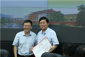 学院教授委员会主任刘俊勇宣读理事会成员名单,张林副校长为理事会成员颁发了聘书