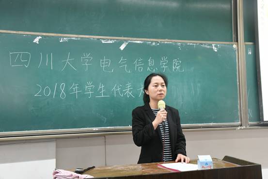 2018年5月26日上午,电气信息学院2018年学生代表大会在江安校区第一教学楼B座301教室顺利召开。电气信息学院党委副书记戴婷婷老师、教导员李小根老师、团委副书记汤博老师和a漫