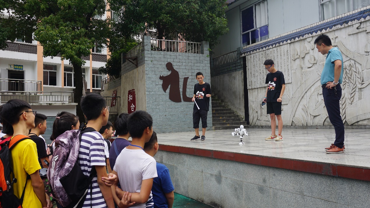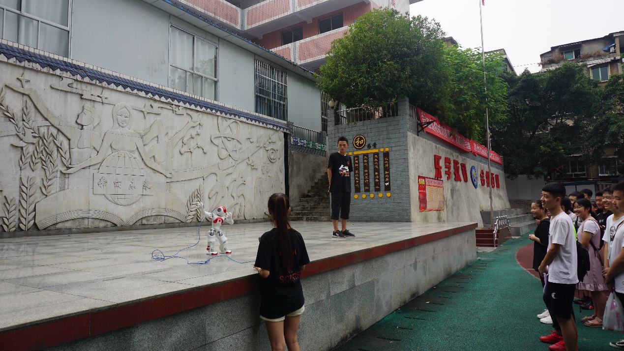 机器人足球团队来到四川省宜宾市珙县巡场镇中学,正式举行“青年红色筑梦之旅”科技中国小分队暑期科技夏令营开营仪式。a漫