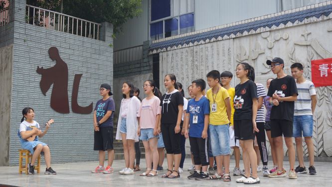 8月14日上午9:00,暑期夏令营结营仪式正式启动。红旅小分队优秀队员代表张浩上台抒发了对这半个多月的活动得感想,并鼓励同学们继续探索科学世界。随后,一班全体成员以一首《追光者》合唱拉开了文艺汇演的序幕,二班别出心裁地将吉他与杯子舞结合,演奏了一首《稻香》,三班则用尤克里里伴奏,活泼轻快的《宝贝》带动了现场的气氛。