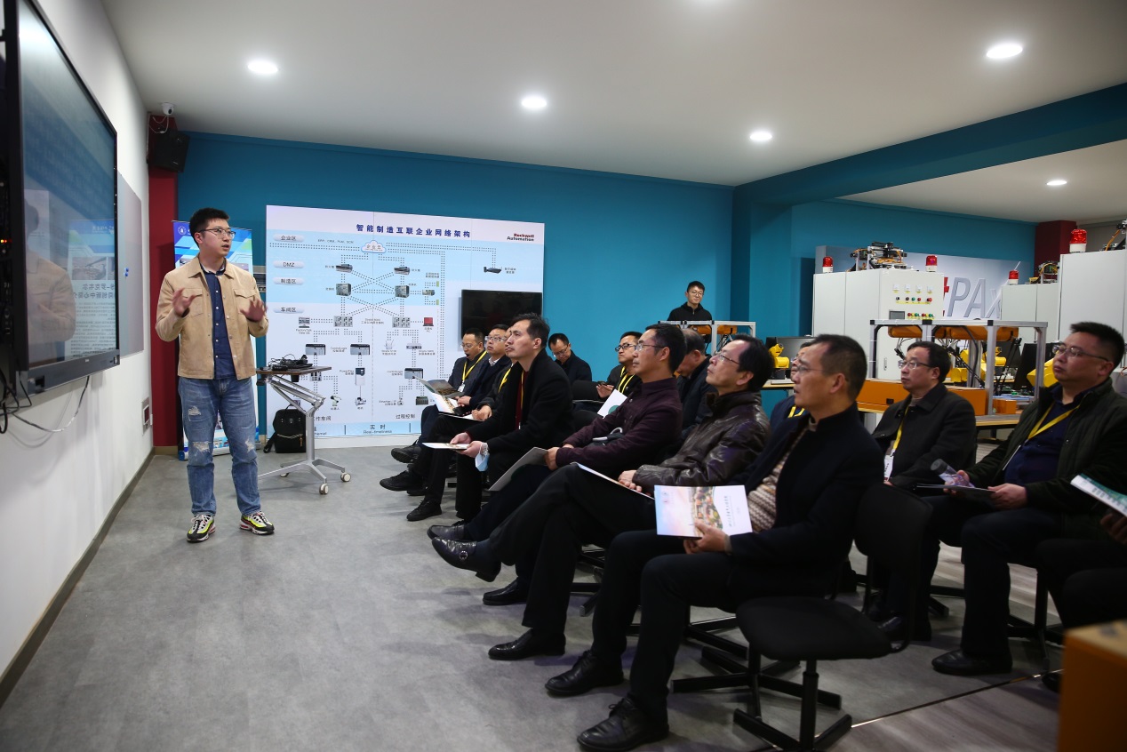 ——罗克韦尔智能制造协同创新中心参观,由实验室的博士向各位代表详细地介绍了创新中心团队的研究方向及负责的科研项目,重点展示介绍了蛇形臂及清扫机器人等机器人的研究与开发情况。