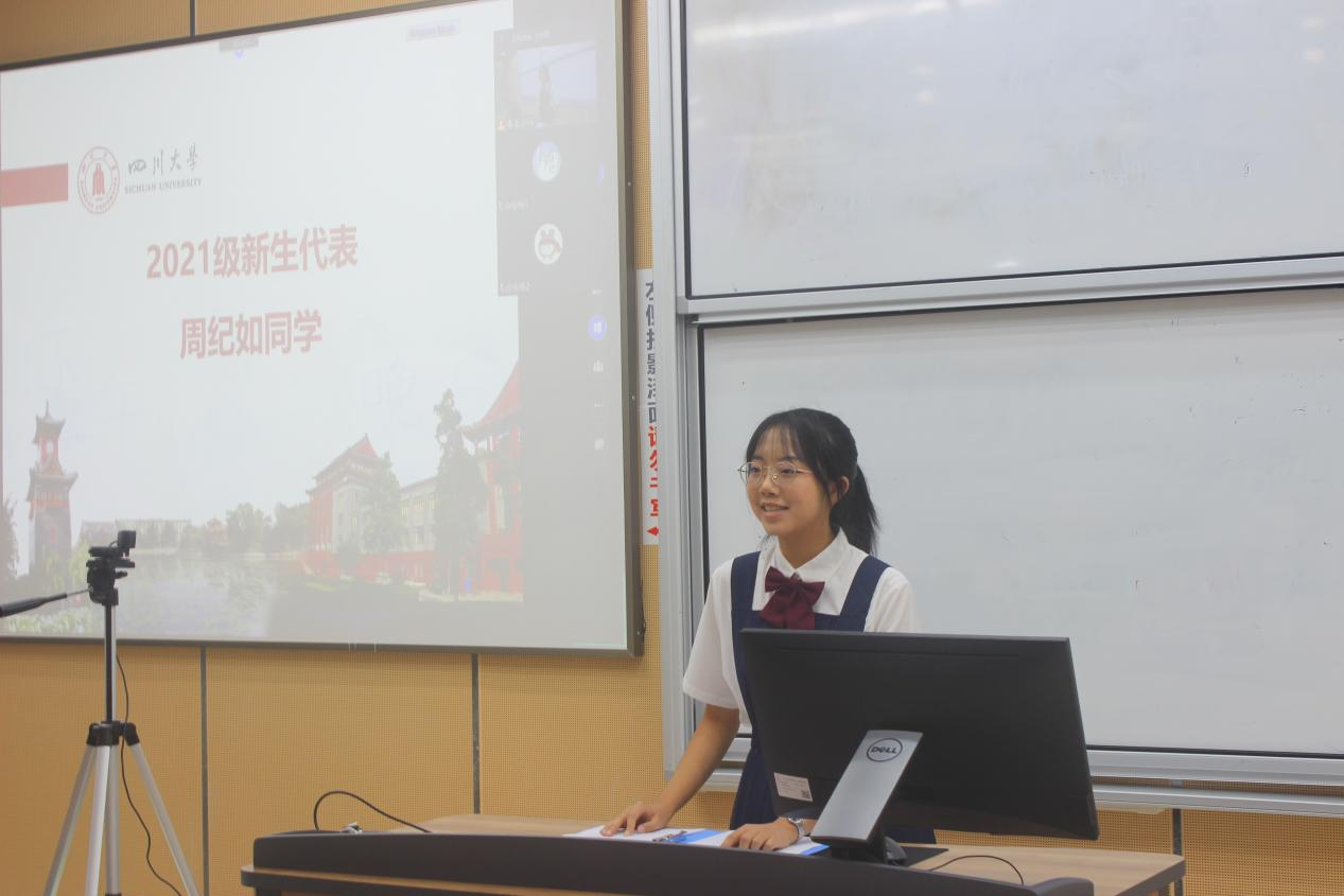 随后,学院2021级本科生周纪如作为新生代表发言。周纪如同学首先表达了对于大学学习生活的向往与期待,以及对于a漫