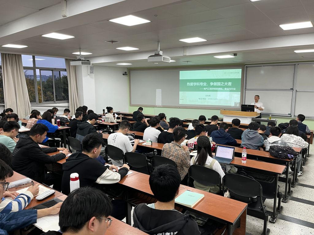 ,爱自己的学科专业;认真学习专业技术知识,努力成长为杰出人才,为我国电力发展贡献力量。同学们认真聆听,积极参与交流讨论,现场掌声不断。