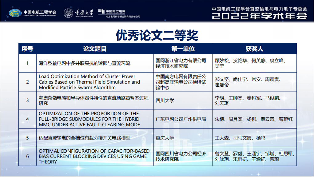 本次年会还为“第八届直流输电与电力电子创新杯大赛”的获奖作品举行了颁奖仪式,本次大赛共评选出一等奖2项、二等奖3项、优秀奖2项,a漫