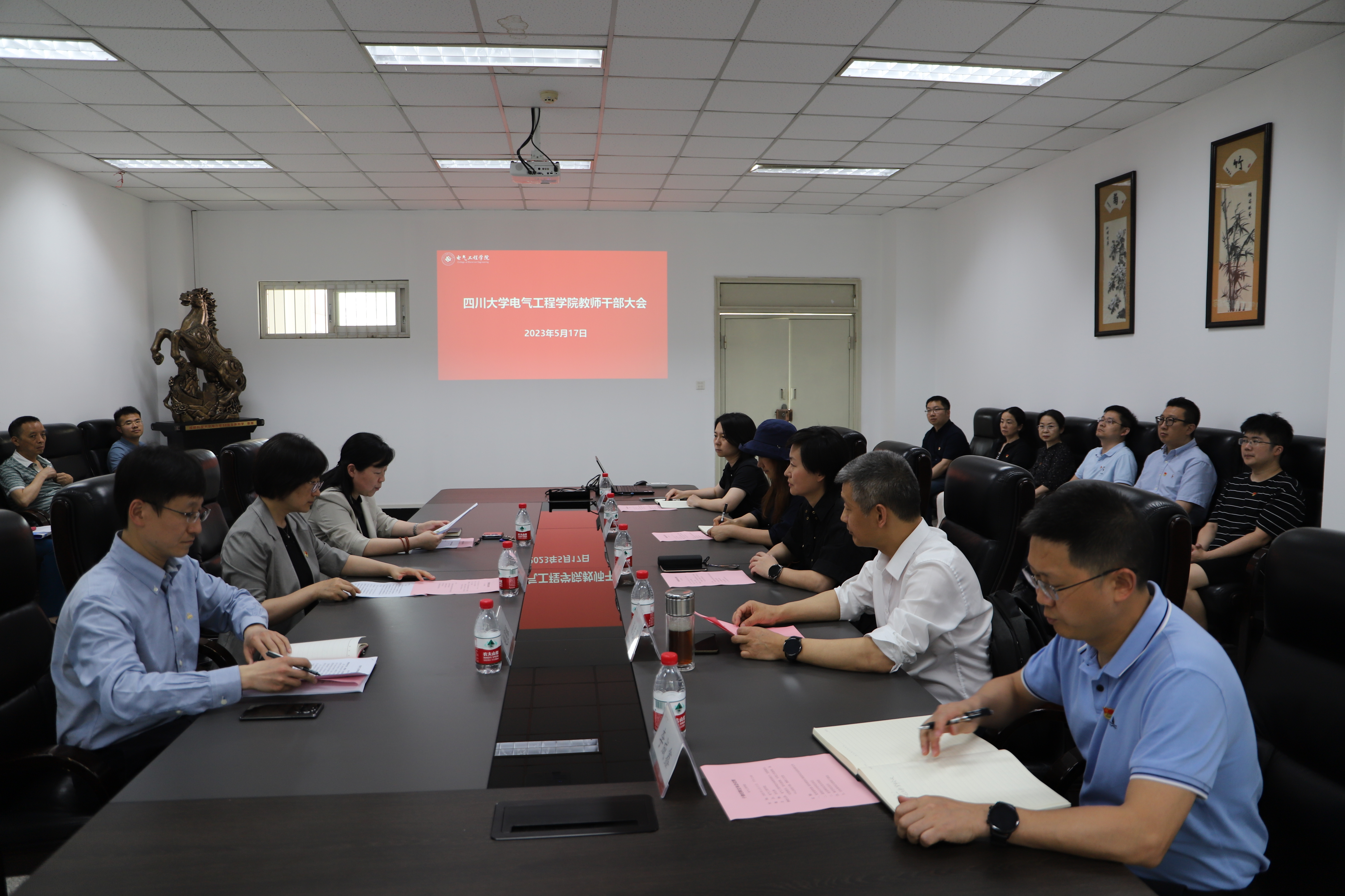 赵昱辉作表态发言。他表示完全拥护、坚决服从学校党委的决定。他说,新的岗位是新的责任,也是新的起点,将始终坚持初心使命,以习近平新时代中国特色社会主义思想为指导,不断增强“四个意识”、坚定“四个自信”、做到“两个维护”,努力推动学院党建工作与事业发展深度融合;始终坚持守正创新,坚持一流标准,树立世界眼光,尽快转变角色,尽快熟悉了解情况,一张蓝图绘到底,与班子成员一起走出一条具有川大风格、体现新工科特色的电气内涵式高质量发展之路;始终坚持弘扬优良作风,切实加强班子团结,凝聚广大师生力量,持续践行以学生发展、教师发展为中心的宗旨意识,持续发展风清气正的育人环境,持续发扬追求卓越、善作善成的精神状态。