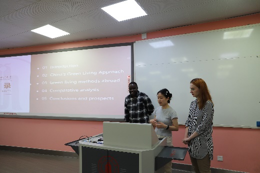 随后,国际周交流营的学生们以“My Green Life, My Smart Life”为主题,带来了一场精彩纷呈的报告展示。他们通过生动多样的形式,从衣、食、住、行等多个方面,展示了中外文化在绿色生活与智能科技方面的独特见解与创意实践。这些报告不仅展现了学生们扎实的学术功底与对生活细致的观察力,更促进了中外文化的深度交流与融合。