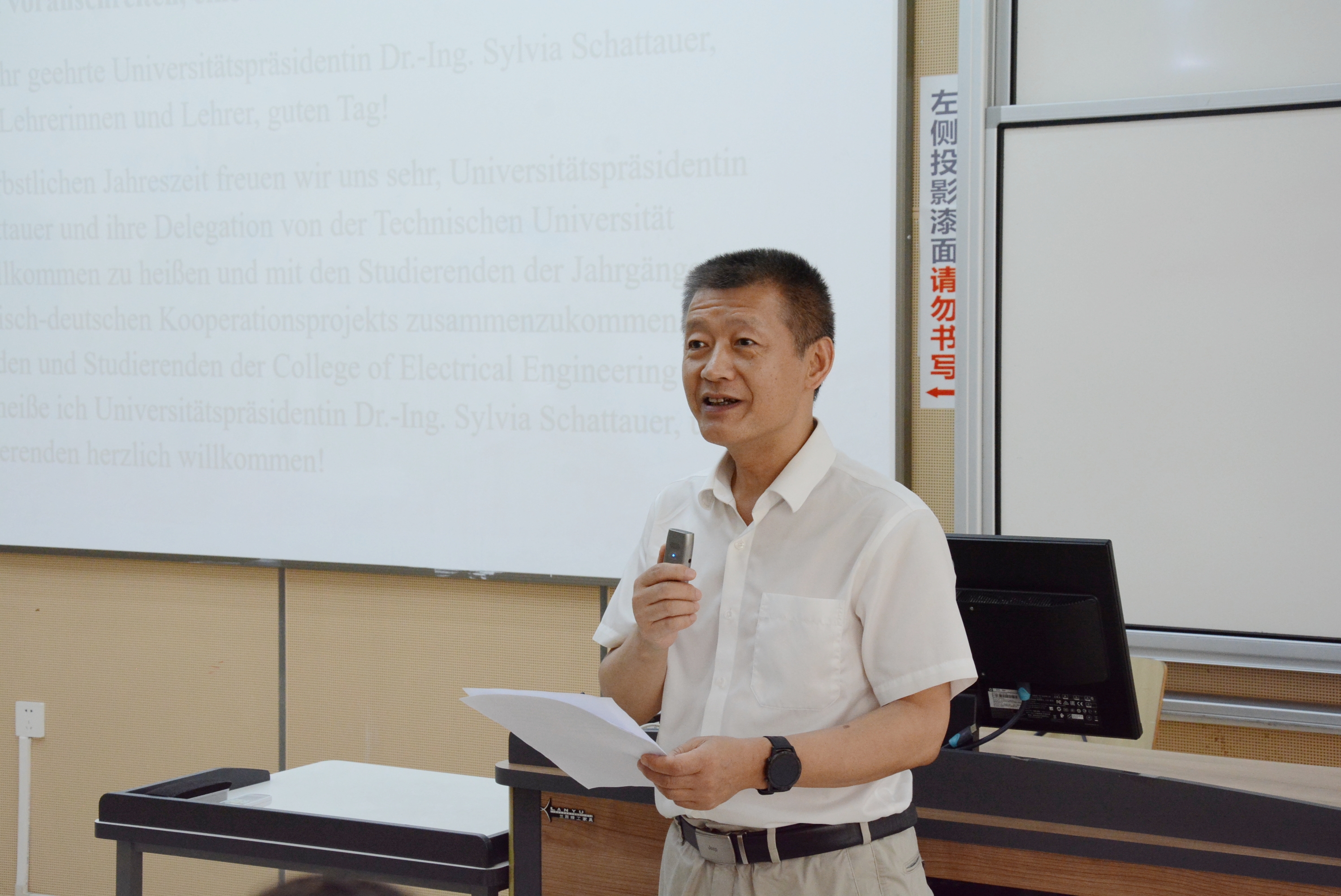 院长肖先勇发表了题为《携手共进,共创国际化未来》的欢迎辞。他回顾了两校近二十年来的密切合作,特别强调了电气工程及其自动化本科合作办学专业在中德双方共同努力下所取得的显著成果。肖院长展望了未来在科研合作、师资交流等领域进一步深化合作的广阔前景,并表达了对中德合作办学项目未来发展的高度期待,希望这一项目能继续发挥重要作用,培养更多具备全球视野的高素质国际化人才。
