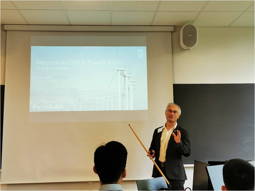 当地时间9月28日上午,同学们在带队老师的带领下来到丹麦技术大学Lyngby校区参加项目启动和欢迎仪式。丹麦技术大学电气工程系Chresten Træholt教授为川大师生致欢迎辞,Træholt教授介绍了丹麦作为清洁能源的全球推动者为绿色能源和环境保护作出的努力和未来计划,他还向同学们介绍了丹麦技术大学和Center of Electric Power and Energy的研究领域及人员组成。随后Traholt教授带领大家参观了PowerlabDK的电动车、电气以及高压实验室,一系列先进的设备引起了同学们的浓厚兴趣,在Træholt教授的详细讲解下, 同学们对PowerLabDK的设备和项目有了初步的了解。