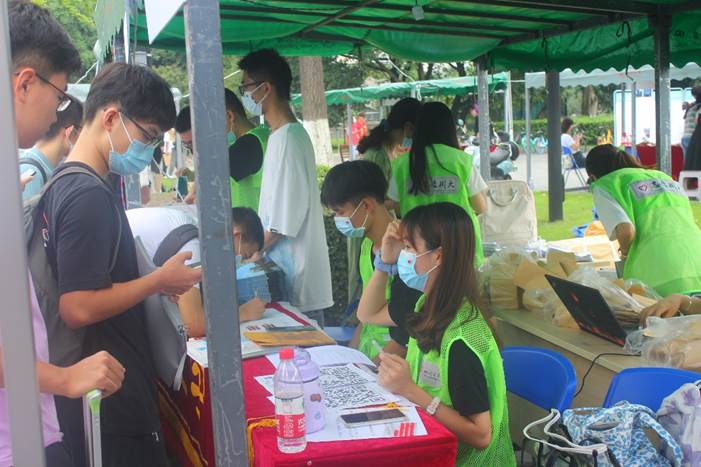 迎新志愿者积极引导新生进行入学核酸检测的工作。服务期间,志愿者们协助维护现场秩序,协助引导应检人员分批、有序地进行检测采样;同时,志愿者们提醒新生戴好口罩、避免交谈、保持适当距离,做好医务人员服务工作,助力核酸检测工作有条不紊地进行。