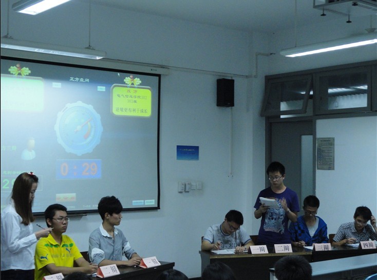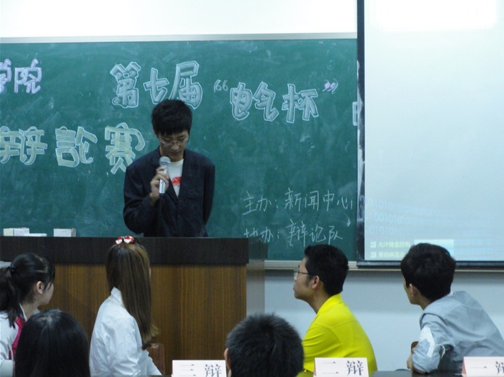 江安校区综合楼B504, B506教室成功进行。电气信息学院辩论队09级队长刘洋,10级队长姜明成,高分子科学与工程学院10级辩论队队长赵书勤,以及电气信息学院09级和10级的资深辩手担任此轮比赛的评委。
