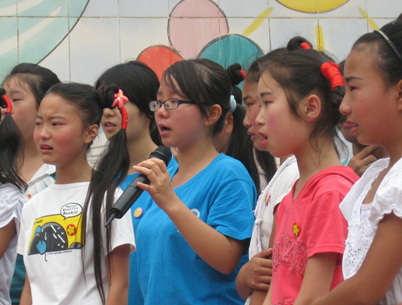 此次文艺汇演由13个节目组成,分为两个篇章:欢乐时光和送别。9点,演出正式开始,“川·爱”志愿者队队长李锴科进行了简短的发言。队长总结了15天来的支教活动,感谢了红光小学提供的支持与帮助,并祝福孩子们快乐成长。第一个节目是由几个年级的学生共同表演的红歌联唱,作为孩子们给中国共产党90岁生日的礼物。紧接着,节奏欢快的舞蹈《种太阳》、《健美操》、《幸福拍手歌》、《hey,加油!》等博得了观众的阵阵掌声。第一篇章中,志愿者们还进行了读书节活动的颁奖环节,对在读书节活动中小同学们精心制作的优秀手抄报进行了颁奖。第二篇章送别,志愿者代表曾晶充满感情地朗读了志愿者们给孩子们的一份信,表达了志愿者们和孩子们在离别时刻难舍难分的情感。由五、六年级同学表演的诗朗诵《再见了,老师》将文艺汇演推向高潮,志愿者和很多小同学忍不住流下了感动的眼泪。最后,活动在参演人员《同一首歌》的歌声中圆满结束。