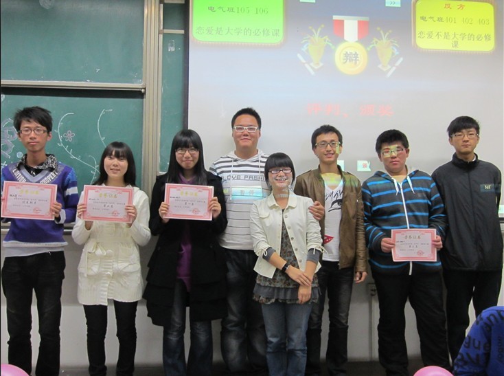 短暂的休息之后,决赛正式开始。正反双方讨论的辩题为恋爱是或不是大学的必修课。正方提出恋爱中可获取成长的观点,反方也不甘示弱,认为大学之中有更多值得我们重视的“必修课”。比赛双方都做了充分的准备,在将己方观点进行深入阐述的同时,又对对方的观点进行巧妙的提问。自由辩论环节尤为精彩,一语中的地质询和无懈可击地答辩赢得现场观众多次热烈掌声。最后,比赛在和谐欢乐的氛围中结束。经评委的商议 电气信息学院2011级401、402、403班代表队获得了本届“电气杯”辩论赛的冠军。