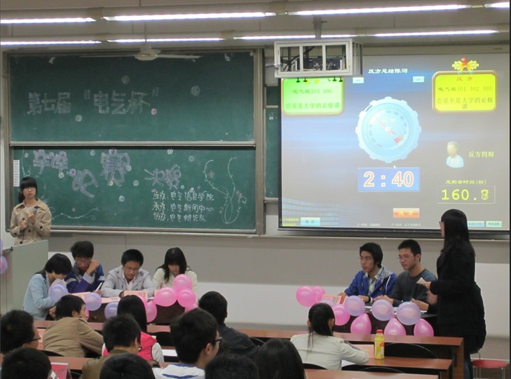 10月28日晚,由电气信息学院分团委学生会a漫主办的电气信息学院第七届“电气杯”辩论赛的决赛在一教B座301教室展开。