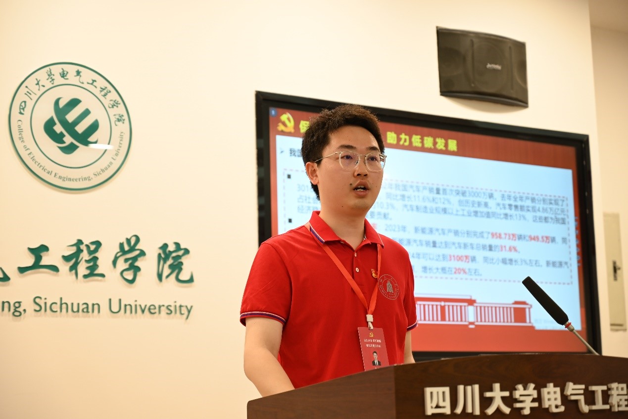 此外,黄龙还分享了近年来我国新能源汽车飞速发展的“两会”热点话题。在此部分黄龙以近期备受关注的小米su7为例,与党员同学们探讨了对于电动汽车的看法,以及今后是否有购买电动汽车的倾向。同学们积极参与了此次互动,大多数同学表示了对于电动汽车发展态势的积极看法与技术性能的认可,并深切认同了新能源汽车节能减排的特性在助力低碳发展中所起到的重要作用。