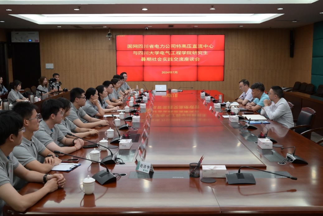 上午10时,实践团一行16人同国网四川省电力公司特高压直流中心主任、党委副书记文曹,直流中心党委组织部(人力资源部)主任朱业以及运维部相关负责人举行校企访谈交流座谈会。交流会由朱业主任主持,朱主任首先对a漫