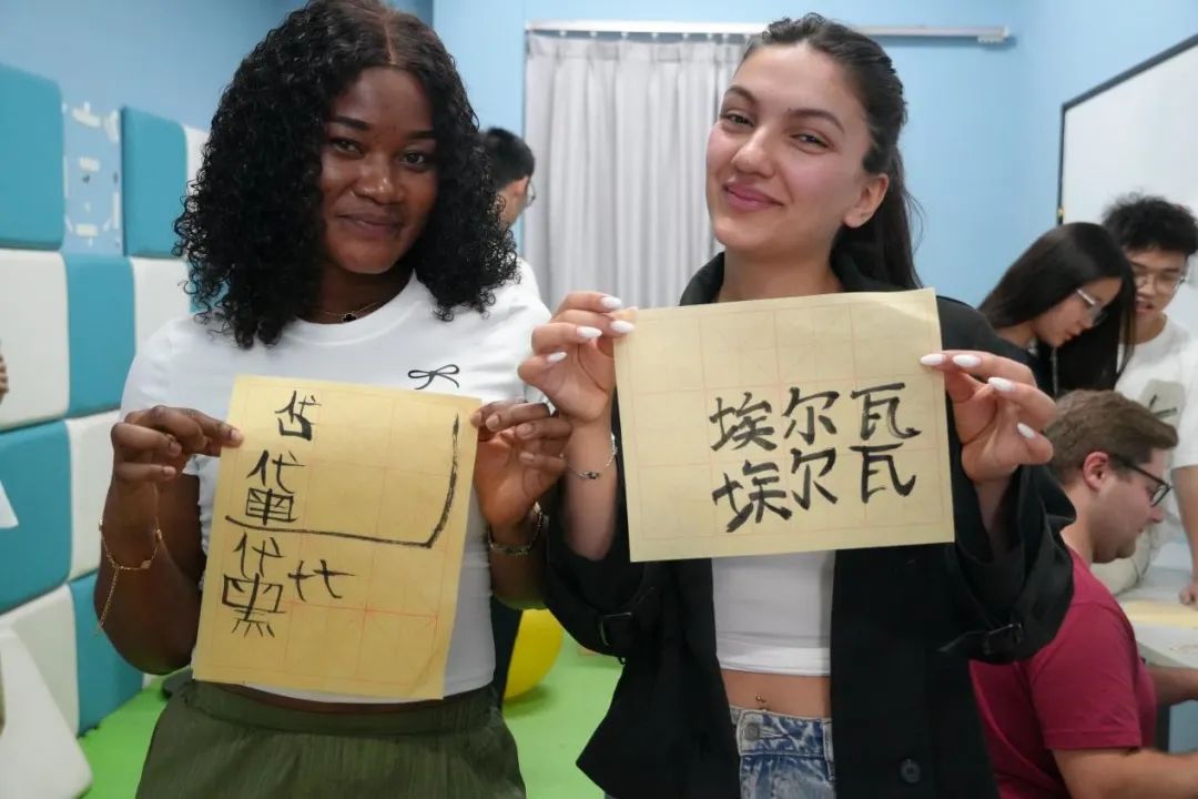 中德班的同学铺开宣纸,指导德国友人执起狼毫。当“黛比”“埃尔瓦”等中文名字在宣纸上渐次成形,留学生们惊喜地发现,汉字的提按顿挫间竟藏着如此丰富的韵律。