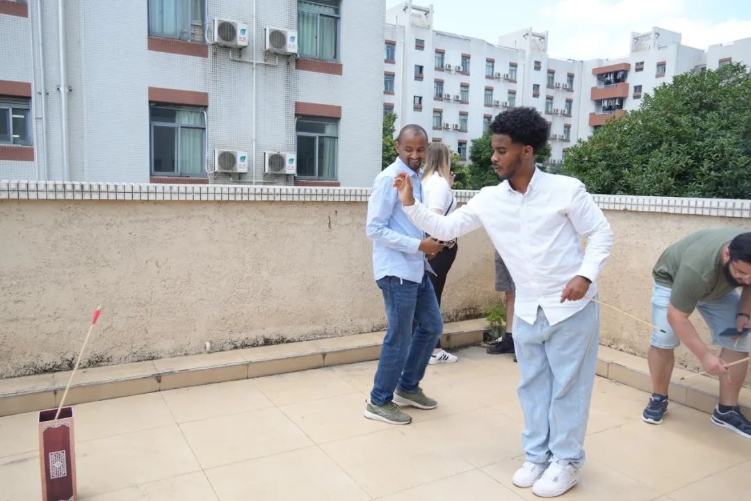 “中了!”当德国留学生将箭矢稳稳投入铜壶时,全场爆发出欢呼。这场源自周代的传统游戏前,大家认真揣摩“抱壶而投”的技巧,在一次次瞄准与投掷中,感受着古人"礼射"文化的趣味。投中时的喝彩与未中的笑声交织,让千年古礼瞬间有了鲜活的现代注脚。