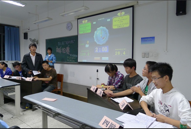 本次辩论赛围绕“是否应该让青少年充分接触社会”和“网络使大学生活更充实还是更寂寞”两个辩题展开,由电气信息学院各班派代表参赛。第一场比赛以“是否应该让青少年充分接触社会”为题,正方坚持“应该让青少年充分接触社会”的观点,强调青少年应主动适应复杂的社会,而不是一味躲在象牙塔里;而反方则认为,不应该让青少年过早的接触社会上的黑暗面,影响青少年的健康成长。之后的第二场辩论中,正方认为网络充实了大学生活并举例论证,而反方坚持网络影响人的正常交际,降低了人的幸福感。现场各位辩手成竹在胸,咄咄逼人,双方针锋相对,言语犀利,不时赢得台下掌声。随后,各位评委对同学们的表现进行了总结,指出各场比赛正反方论点上的不足以及细节上的问题并提出了作为大学生应该做什么等值得大学生思考的问题。