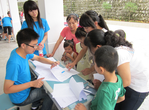 早上九点,十名志愿者被分成五组并分配了各自负责的区域。紧接着,开学前的宣传工作在周边的几个社区及小荆村、庙坝等相对偏远的居民安置点同时进行。志愿者们耐心的向乡民和孩子们介绍本次支教活动,并受到了乡民的热情接待和细心询问。