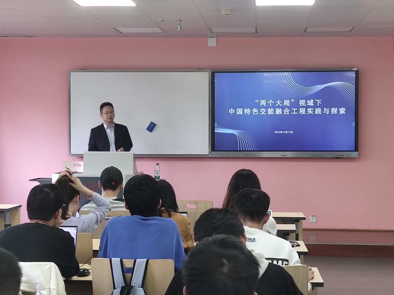 2021级电气工程及其自动化卓工班电气工程前沿研讨课企业技术专家进课堂——“两个大局”视域下中国特色交能融合工程实践与探索,在基础教学楼A401顺利开展。本次讲座由四川路桥建设集团股份有限公司正高级工程师孙周主讲,学院向月老师主持,卓工班全体学生积极参与。