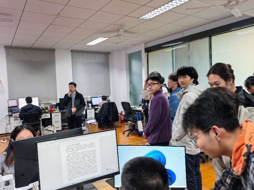 最后,同学们参观了位于五楼的科研办公室和一楼的实验大厅,实地感受研究生的日常科研氛围,了解数据采集、仿真分析、论文开题与项目管理等科研流程。王顺亮老师特别介绍了实验室配备的RTDS等高端仿真设备,拓宽了学生的专业视野,也激发了大家的科研兴趣与创新动力。