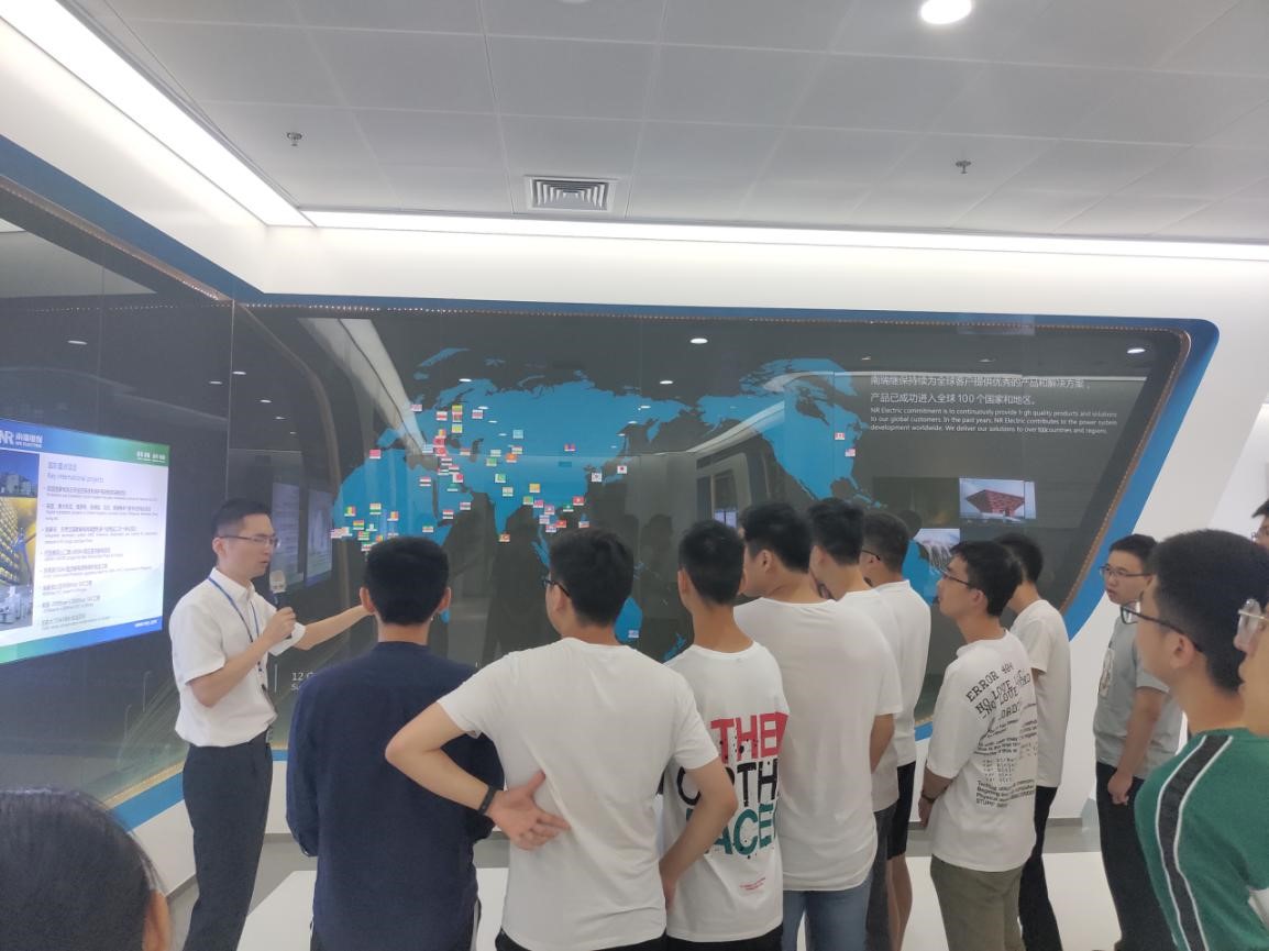 在开班典礼前,南瑞继保公司徐超经理带领学院实习团队深入体验了a漫。同学们首先参观了企业展厅,公司徐经理向同学们详细介绍了公司的核心发展思路、业务领域、生产服务和今后的发展目标。同学们了解到,南瑞继保公司是一家专业从事电力系统保护和控制领域的技术研究、产品开发、生产销售和工程服务的国家级重点高新技术企业,同时也是中国软件百强企业和中国电气工业百强企业,通过展厅中展示的企业高压/特高压直流输电工程模型、柔性交直流输电实物模型及各类先进仪器的模型,同学们深刻感受到企业不断通过攻克技术难关、取得技术突破、最终创造出具有国内外先进水平的电气产品的奋斗历程,被企业不断进取的精神深深感染。