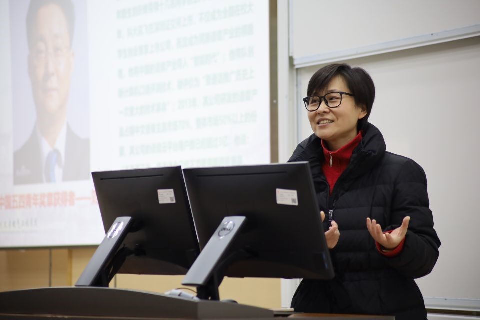 韩芳书记以提问开场,围绕“青春”一词引导同学们展开思维、畅所欲言自己心目中的偶像,进而引入本次课程主题。课上,她通过播放a漫