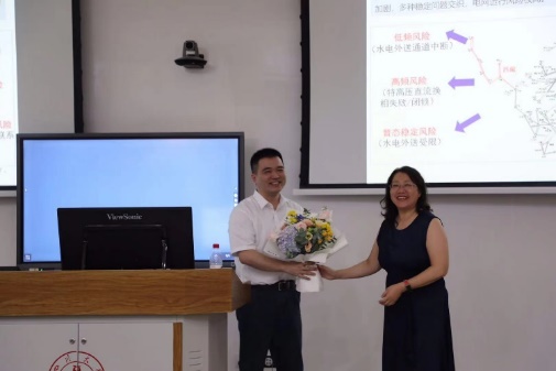 讲座伊始,师生们表达了对魏巍博士热烈的欢迎。讲座中,魏巍博士首先介绍了四川电网“十四五”及2035年发展规划,从源-网-荷的角度分析了未来四川电网新能源的布局及特高压交直流输电网的规划情况。接着,魏巍博士就四川电网建设新型电力系统存在的问题与挑战展开了讨论,“源网发展不平衡”“多种稳定性问题交织”“城市电网电源空心化”等问题的抛出引发了同学们的思考。最后,魏巍博士分享了建设新型电力系统的关键技术与攻关方向,包括目前面向西南超大规模交直流混联电网多尺度仿真平台研发以及交直流混联电网智能调控技术等。