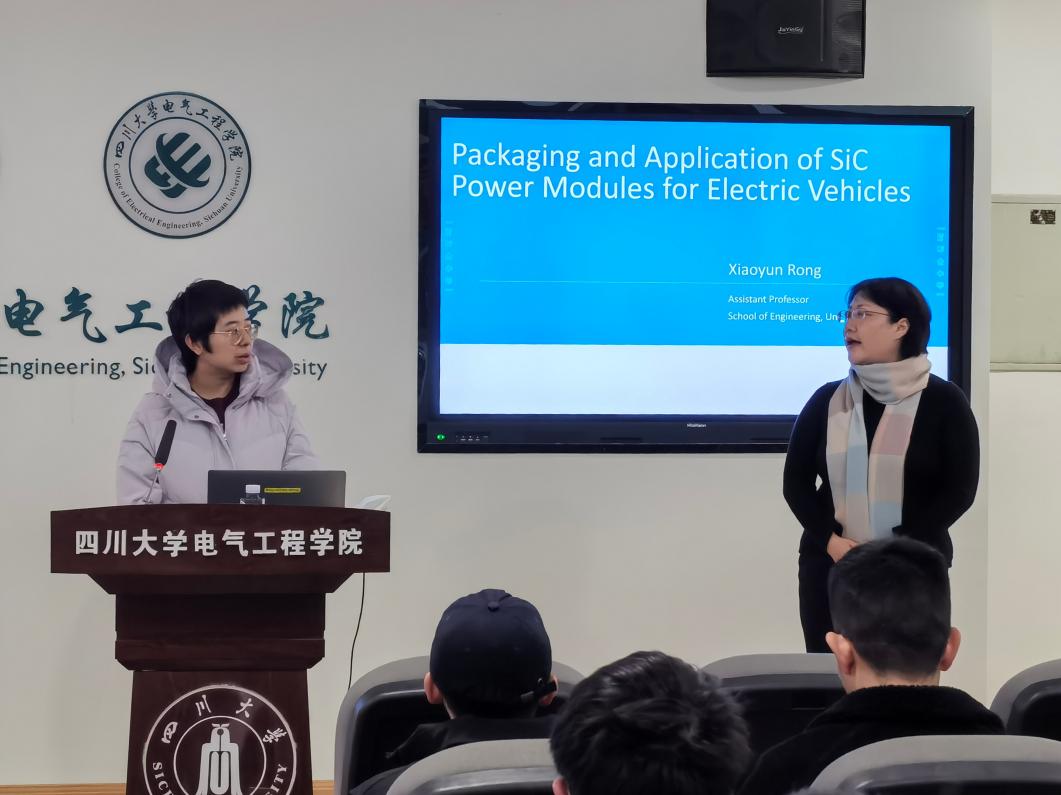 王渝红教授邀请英国华威大学助理教授荣小云博士开展了题为“电动汽车硅功率模块的封装与应用”的讲座。此次讲座吸引了众多硕士生及博士生,旨在通过工程实践中的创新封装策略,深化学生对电力电子技术的理解。讲座的顺利开展为a漫