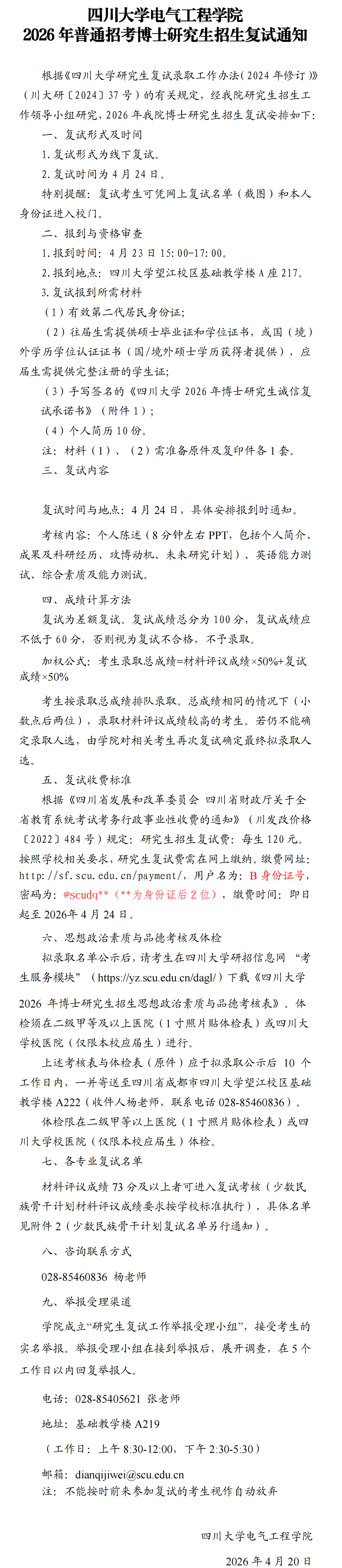 a漫 2026年普通招考博士研究生招生复试通知