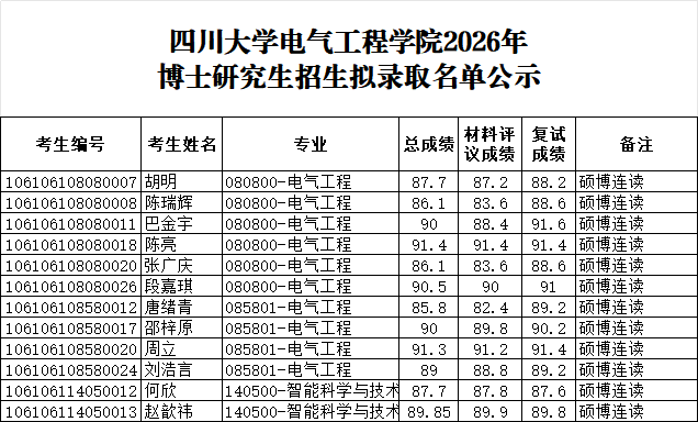 a漫 2026年博士研究生拟录取名单公示(硕博连读)