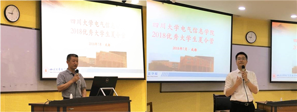 在开营仪式上,刘友波副院长首先致欢迎辞,随后肖先勇院长介绍了学院的基本情况、人才培养情况及学科建设规划,希望来参加夏令营的优秀大学生们通过两天的参观、交流,能对学院科研环境、学术氛围有更深入的了解,感受a漫 “海纳百川,有容乃大”的胸怀。